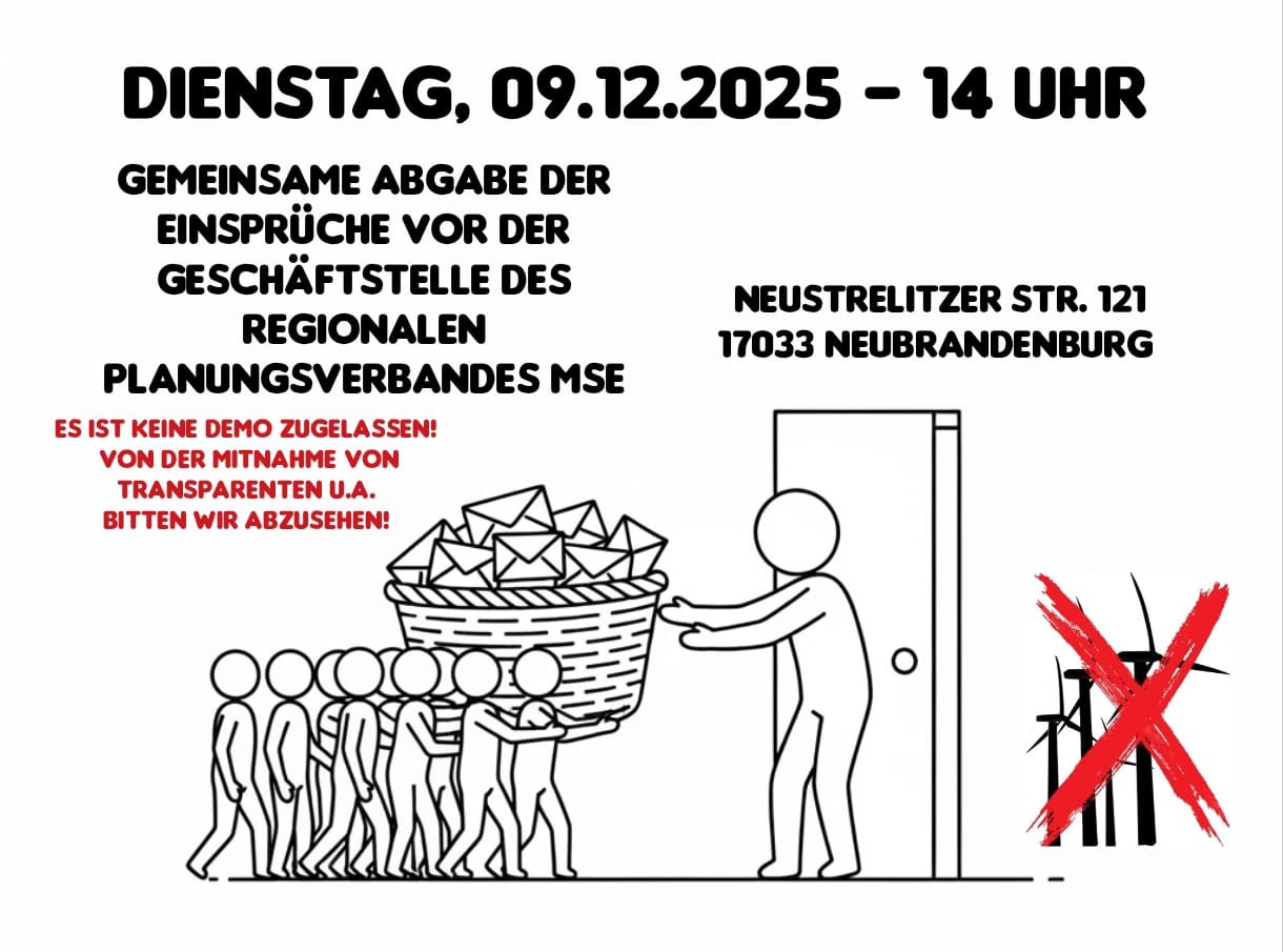 Die Initiative Gegenwind Seenplatte stellt hier einen Generator zur Verfügung. Jeder kann (auch für die Nachbarn) einen Widerspruch generieren.